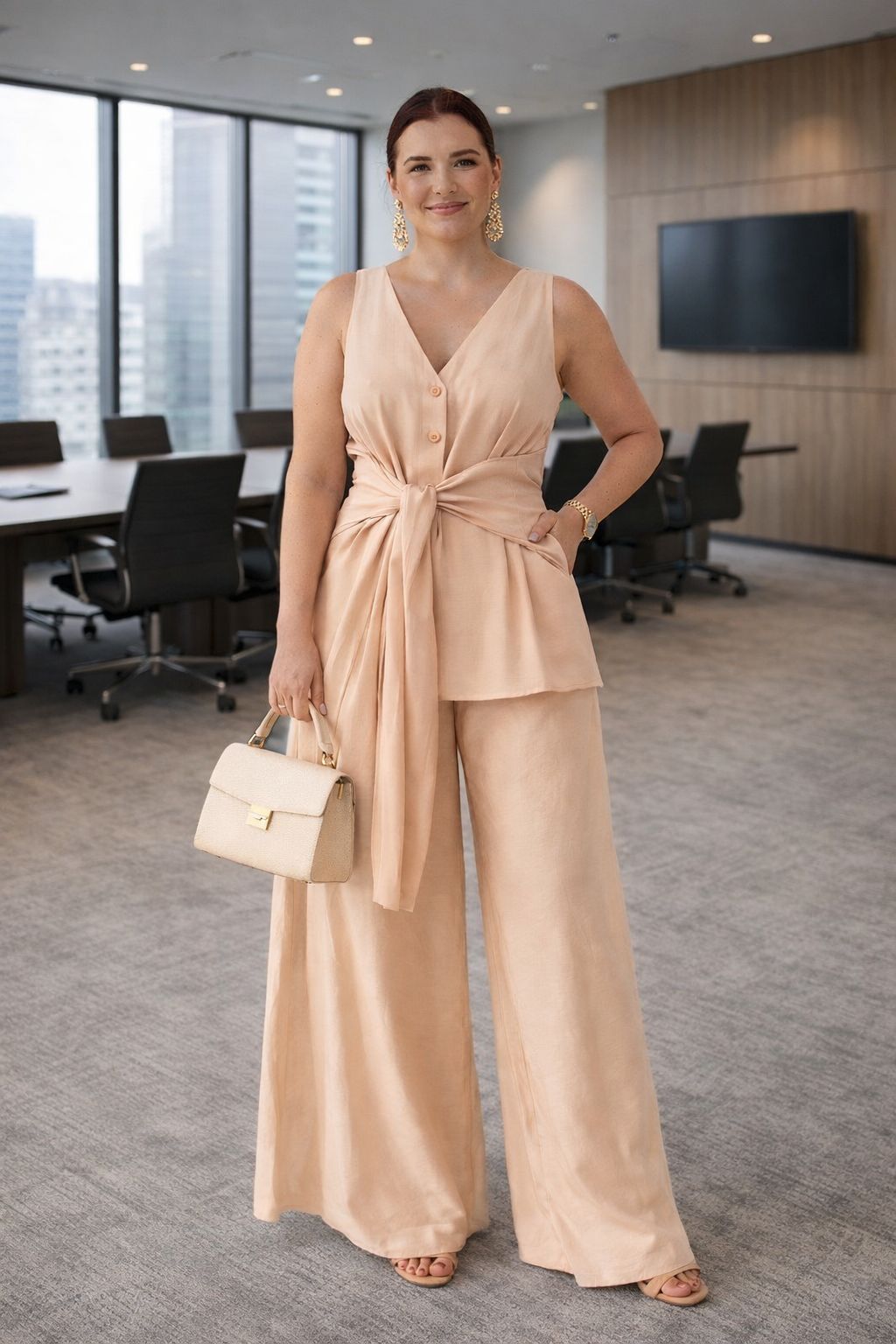 Blusa colete com drapeado no ombro, decote em V, sem manga, com botões frontais.