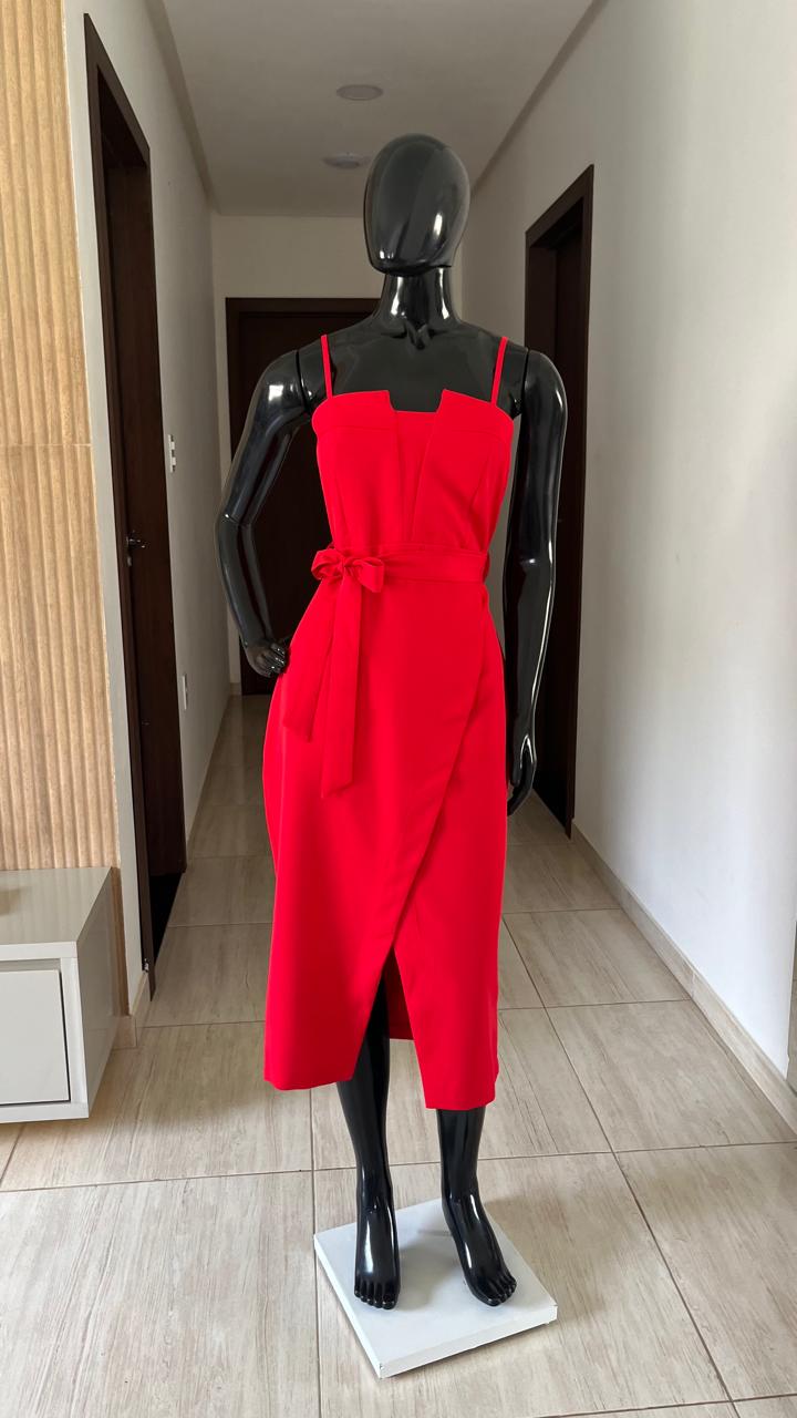 Vestido com alça regulavel, pala na cintura, faixa para amarração na cintura.